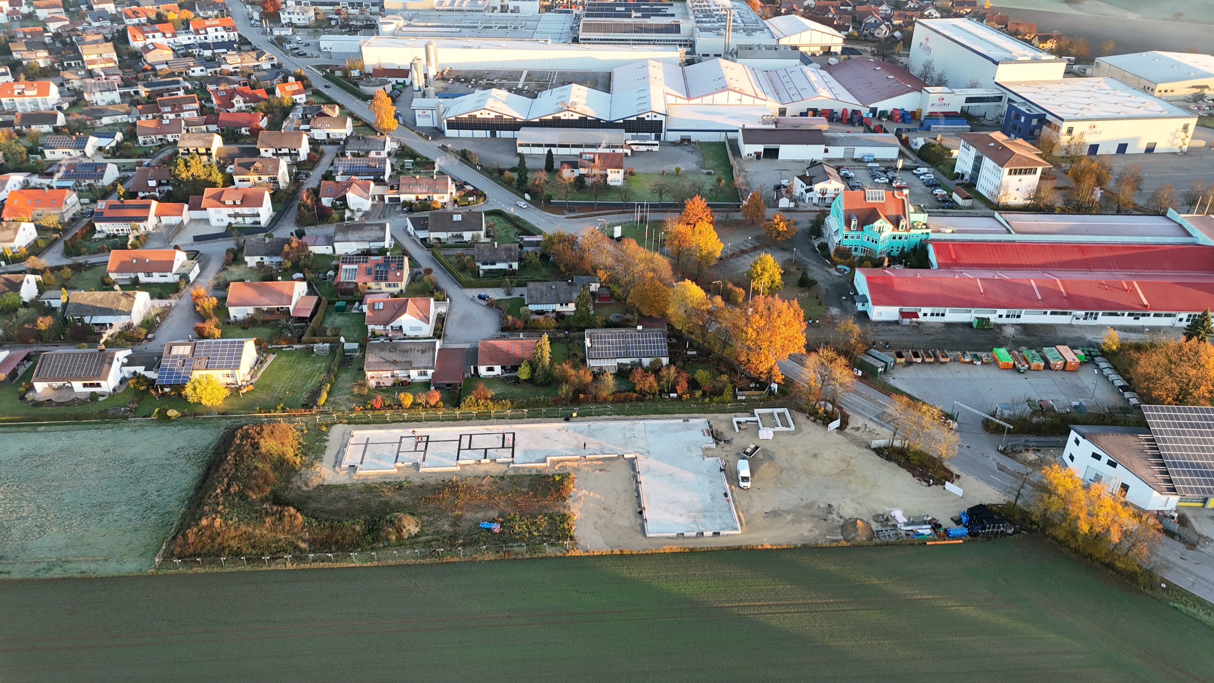 Mit dem Beginn der Erdarbeiten am 7. April 2025 (KW 15) startete die Baumaßnahme zum Neubau eines fünfgruppigen Kinderhauses an der Fruehaufstraße in Schierling. Auf dem rund 5.000 m² großen Grundstück entsteht ein L-förmiger Neubau in Holzbauweise, der künftig Platz für drei Kindergartengruppen und zwei Krippengruppen bieten wird.