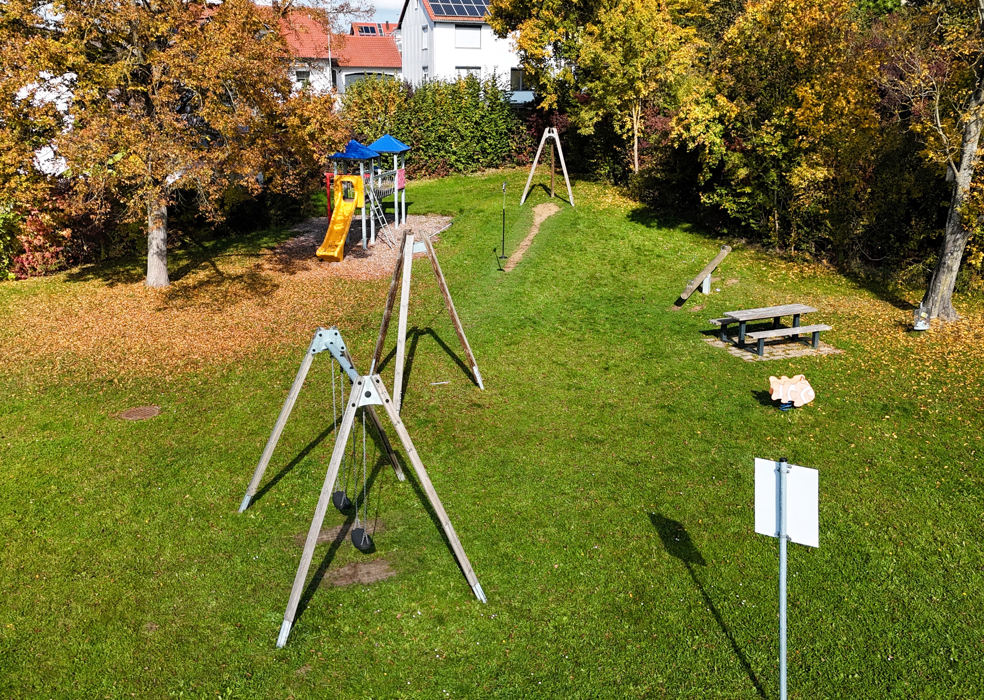 Auflösung des Spielplatzes und Platzierung der vorhandenen Spielgeräte an anderer Stelle. Prüfung, ob die Anlage einer Blühwiese möglich ist.