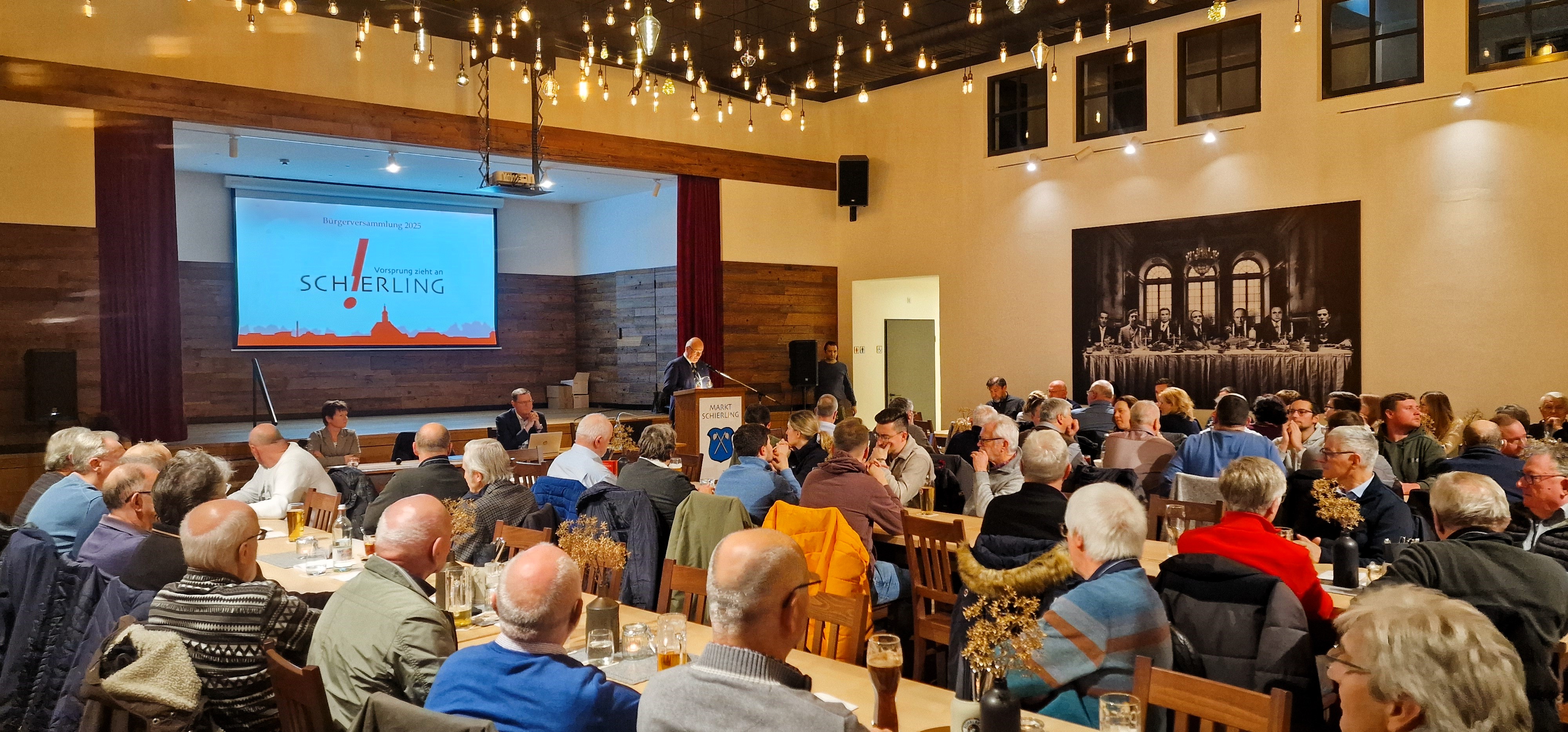 Die Stimmung bei der Bürgerversammlung am Donnerstag, 4. Dezember 2025, im Kirchenwirt Schierling war gut. Rund 130 Bürgerinnen und Bürger waren anwesend. Bürgermeister Christian Kiendl eröffnete die Veranstaltung im voll besetzten Saal.