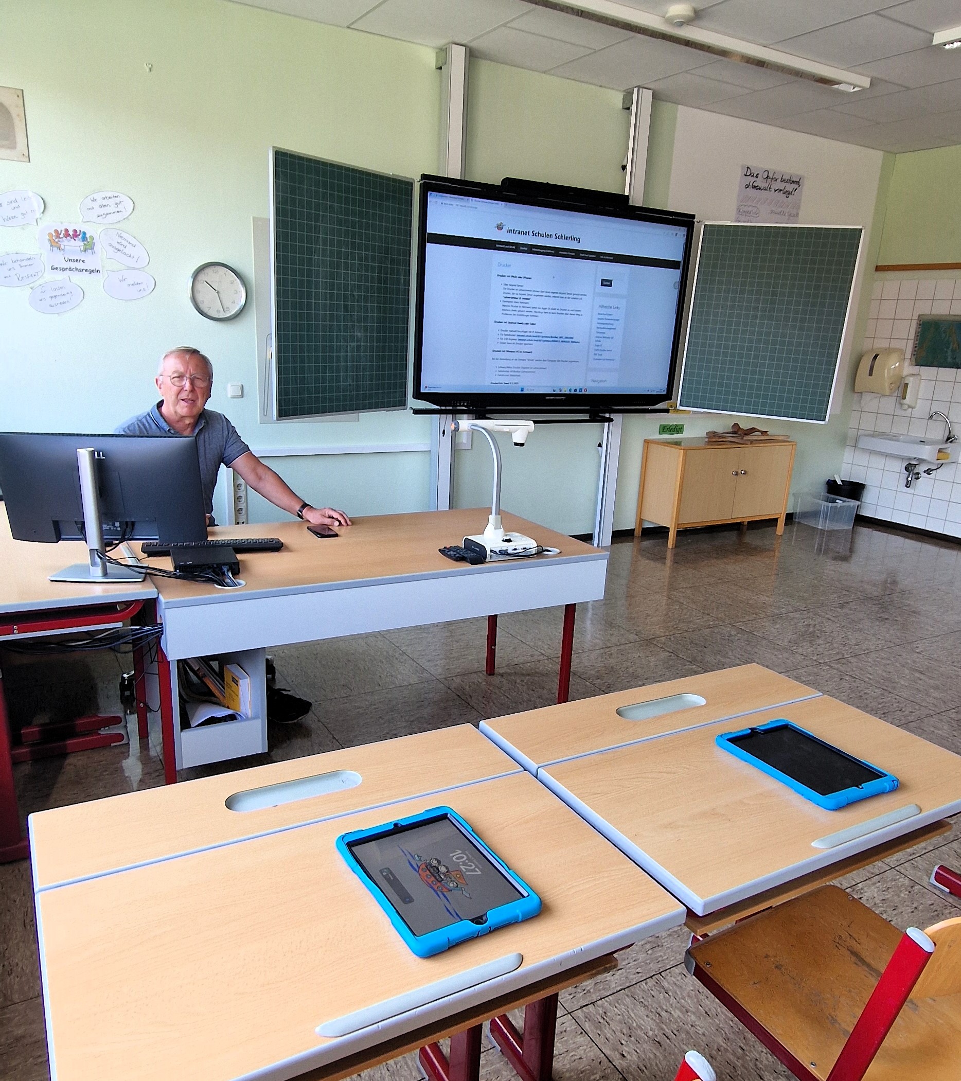 Bild: IT-Mitarbeiter Albert Baumgartner in der künftigen Tabletklasse.