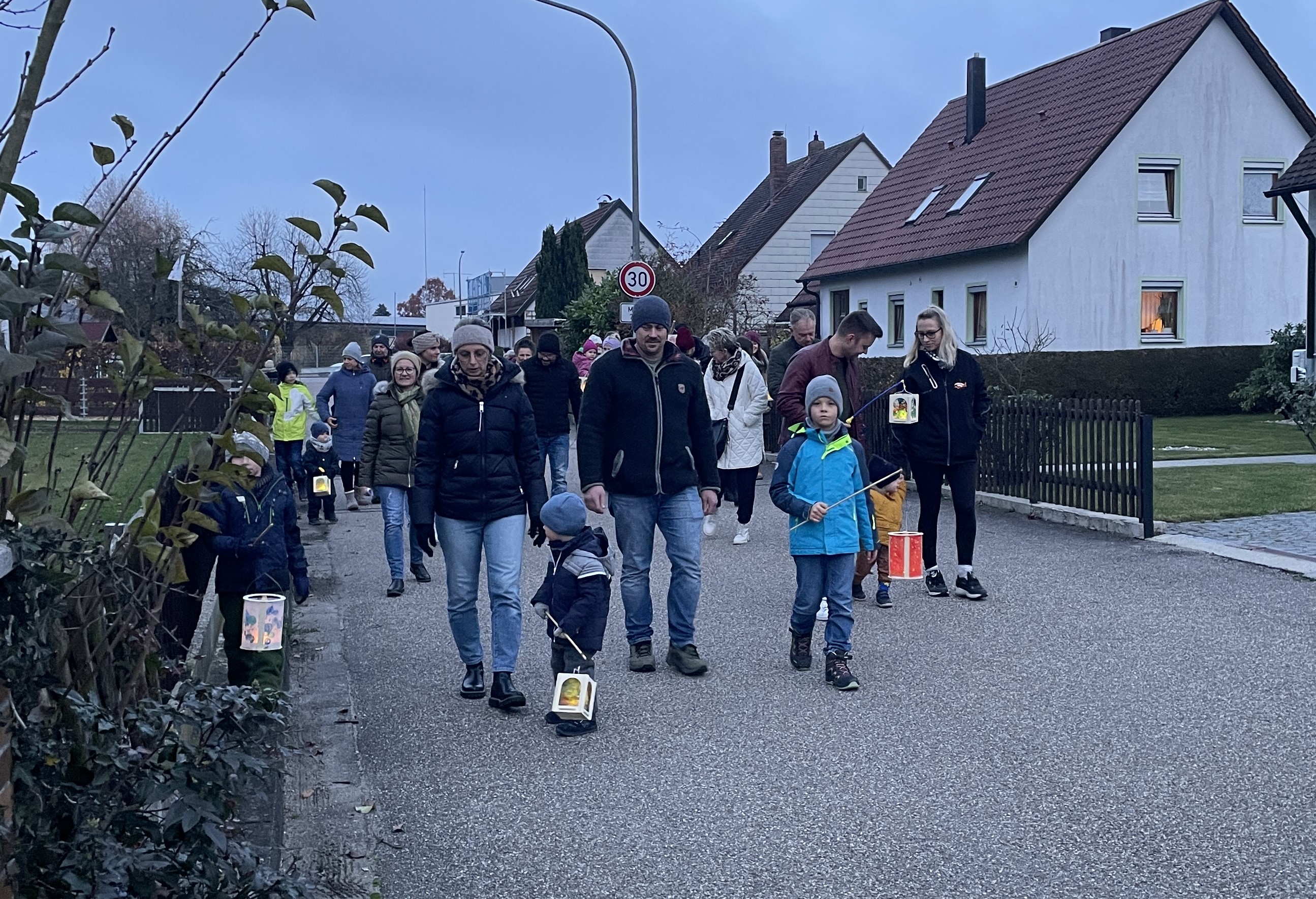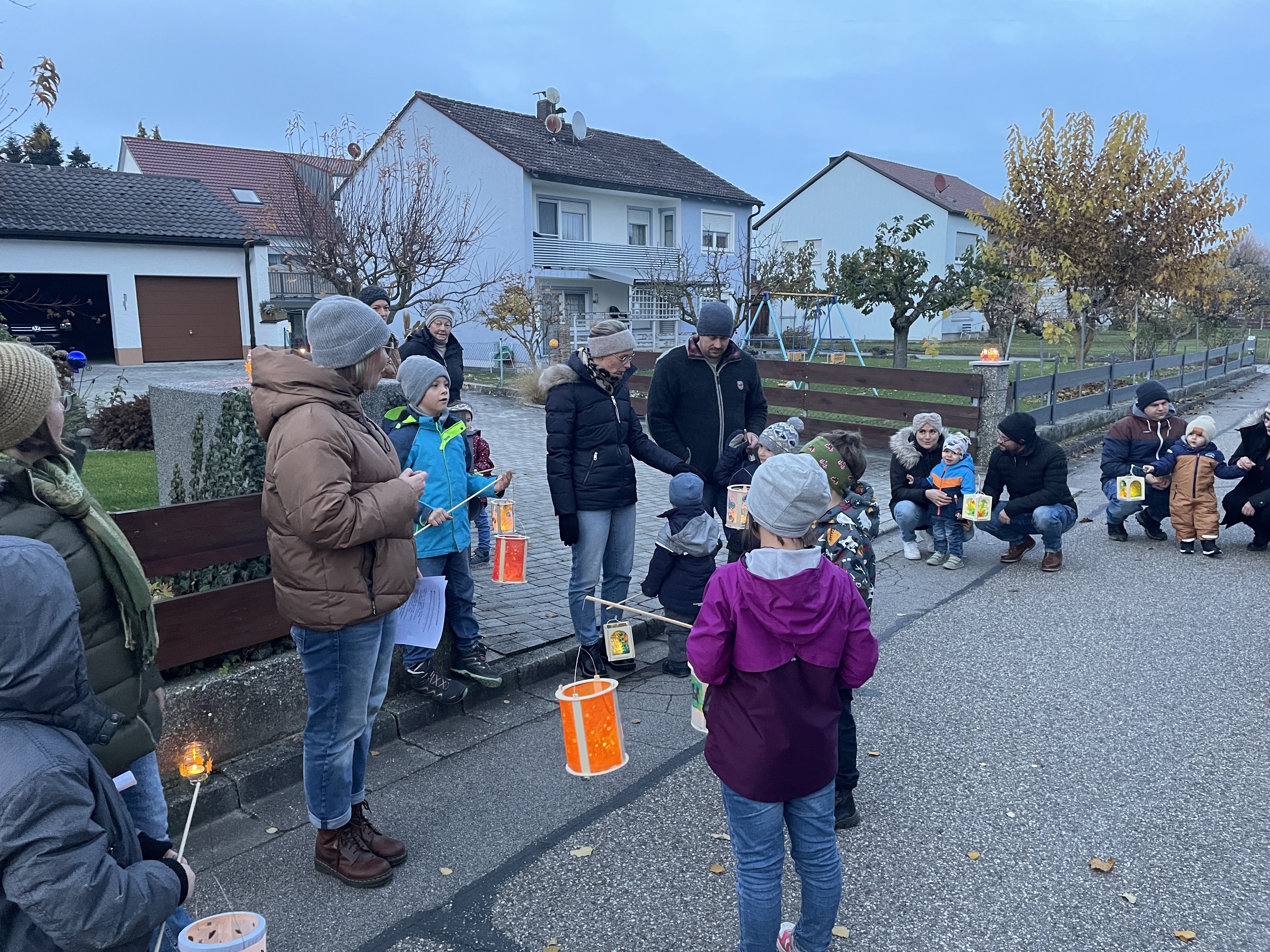 Die Kinder hielten ihre Laternen fest in den Händen, und während des kleinen Umzugs sangen alle gemeinsam die bekannten Lieder „Ich geh mit meiner Laterne“ und „Durch die Straßen auf und nieder“. Die leuchtenden Laternen sorgten entlang der Straße für eine stimmungsvolle Atmosphäre.