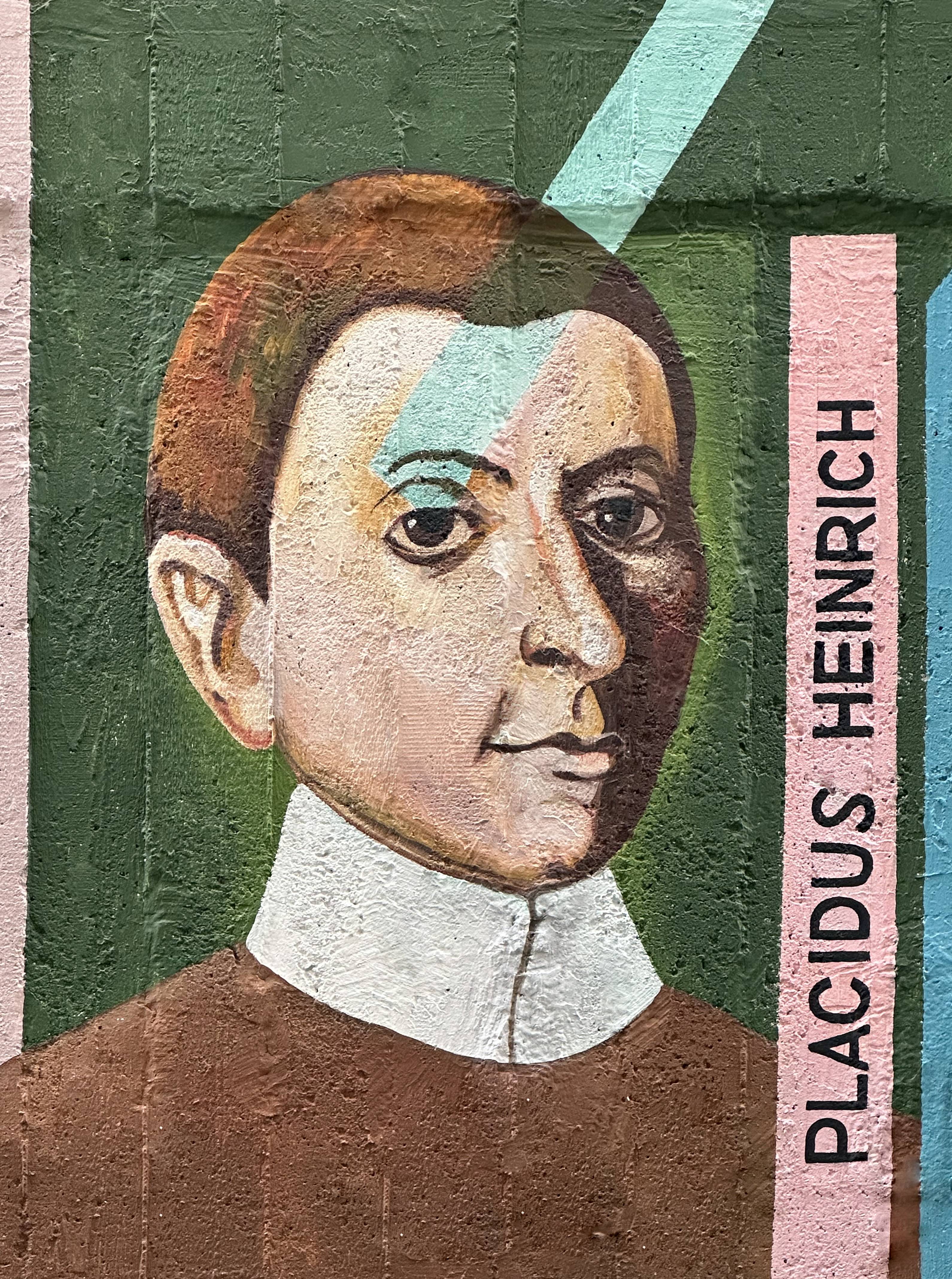 - Das jüngste Portrait von Placidus Heinrich hat der ukrainische Künstler Oleg Kuzenko geschaffen, und zwar im Rahmen seiner Installation „Personen, die in die Geschichte der Stadt Regensburg eingegangen sind“. Zu sehen ist das gesamte Kunstwerk im Jesuitengässel, westlich der Parkgarage am Petersweg.