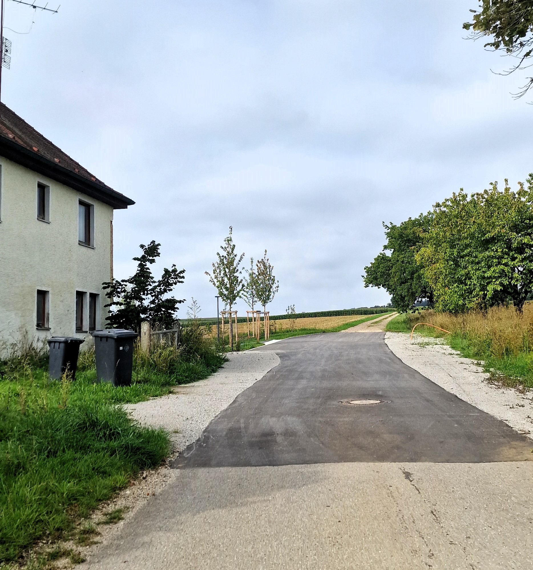 Ein weiterer wichtiger Schritt betraf Allersdorf: Die Siedlungsstraße bei den Hausnummern 8 bis 67, die Teil der Radwegverbindung vom Gewerbegebiet „Birlbaum“ über Allersdorf nach Wahlsdorf ist, wurde neu asphaltiert. Der Belag wies erhebliche Schäden auf und stellte damit ein Sicherheitsrisiko dar. Durch die Sanierung wurde die Strecke für Radfahrer nun wieder komfortabel und sicher befahrbar. Die Straße dient zudem als Zufahrt zum neuen Dorfgemeinschaftshaus.