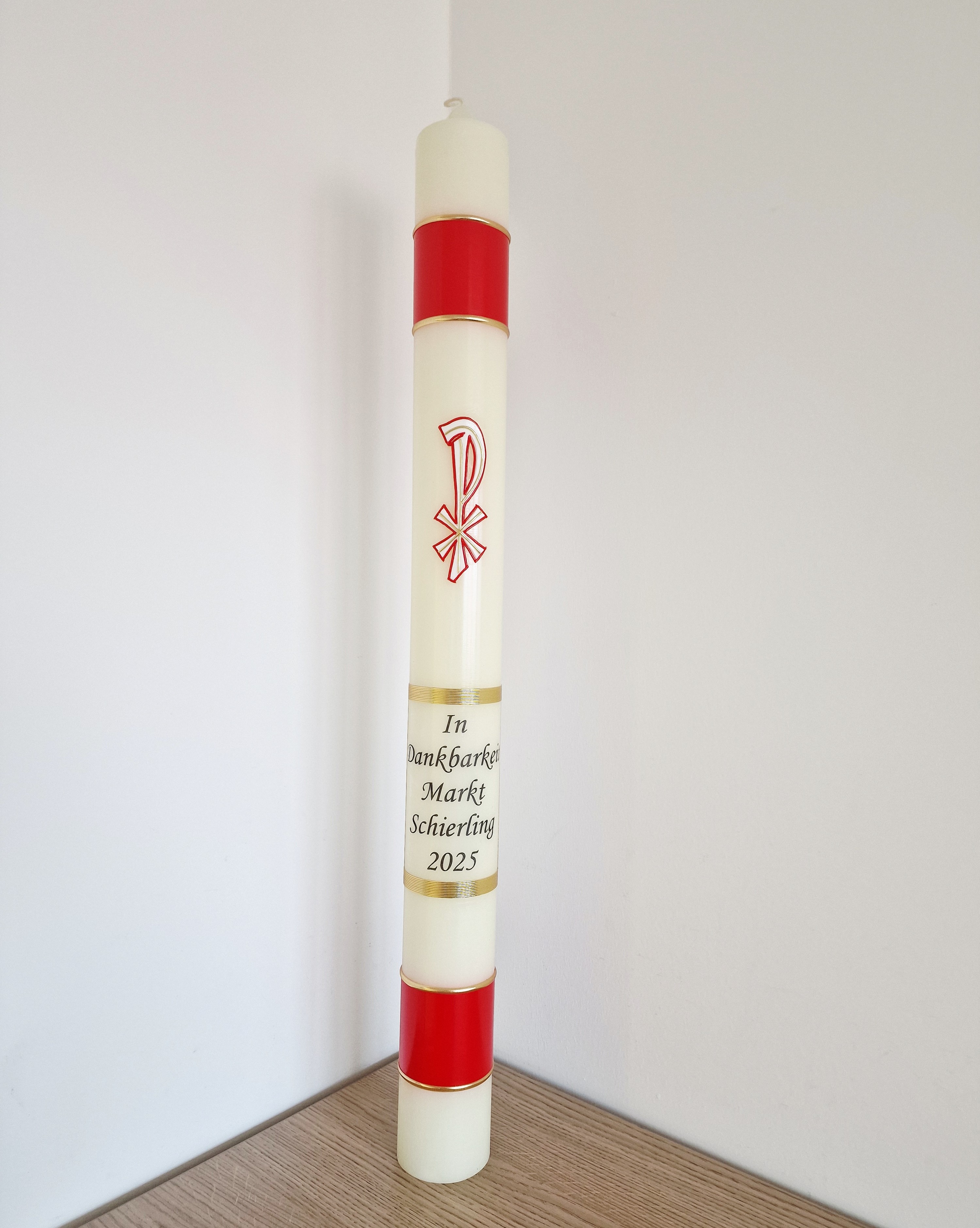 Zum Bild: Seit jeher stiftet der Markt Schierling zur Messe eine eigens dafür angefertigte Kerze die während des Gottesdienstes enzündet wird.