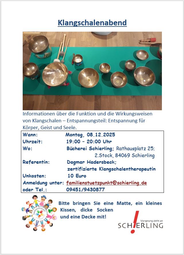 Infos und Anmeldung unter Tel. 09451/9430877 oder familienstuetzpunkt@schierling.de