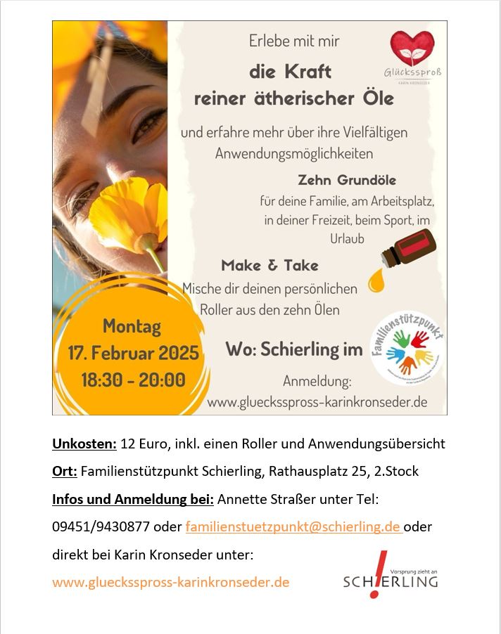 Infos und Anmeldung unter Tel. 09451/9430877 oder familienstuetzpunkt@schierling.de
