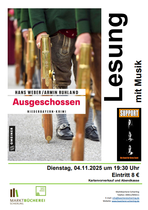 Lesung mit Hans Weber, Regionalkrimis mit musikal. Begleitung in der Marktbücherei Schierling