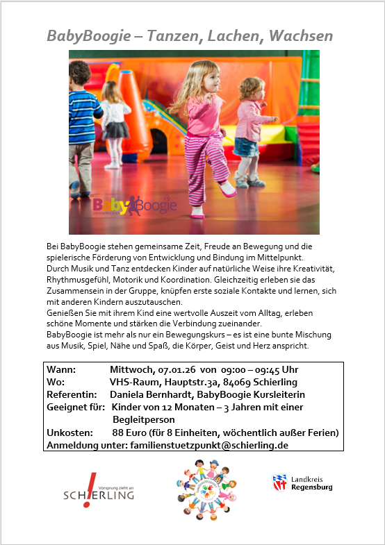 Infos und Anmeldung unter Tel. 09451/9430877 oder familienstuetzpunkt@schierling.de